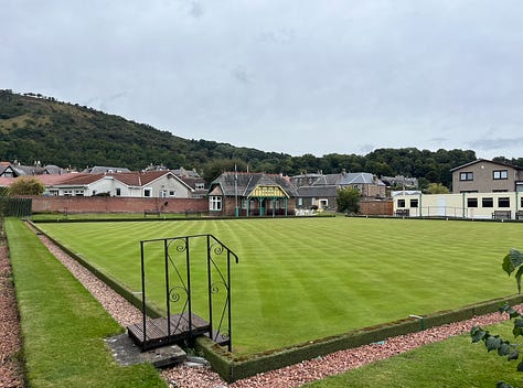 It also seemed that there was a Bowling Green and Club in every neighborhood. Another testimony to the UK’s incredible turf-growing conditions. I never missed a chance to peer over an old stone wall at the HUGE flat perfectly mown and leveled surfaces that glowed well into dusk. We even went to church in St. Andrews at a church plant that met in the Club house of the neighborhood Bowling Club.