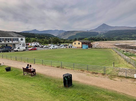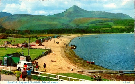 I cannot write anything about Scotland without mentioning this Island that feels like a soul home for me and my family. There is a community putting green between the street and the beach in Whiting Bay. It was too late in the season for us to play there. There is a putting course next to the short course at Lochranza. And there seems to have been an amazing putting green in Brodick as late as 2019. (You can see it in the foreground of the antique postcard below.)