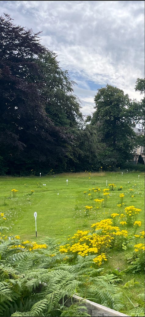 Kinburn Park is a few blocks from The Old Course in St. Andrews. It has a putting course that is barely mown, and features fairways cut between wildflowers and very rough grasses. At least by mid-August, you can barely call it putting, but I would do it again. You cannot expect this spot to reward putting skill or serve as a place to settle bets, but if you are like me, your imagination will make you want something just like this in your neighborhood. One of the days that we were there, we ended up behind two men. One was clearly a caretaker of some sort (maybe family) to the older man who had some mental and physical limitations. He strapped on his golf glove tightly and played each hole with a focus and care that most of us never consider outside of a chance to play Pebble Beach for the first time. It made me smile. I love getting to see things like that with my kids. For what it is worth, there is also an art museum within Kinburn Park (and a public bowling green2).