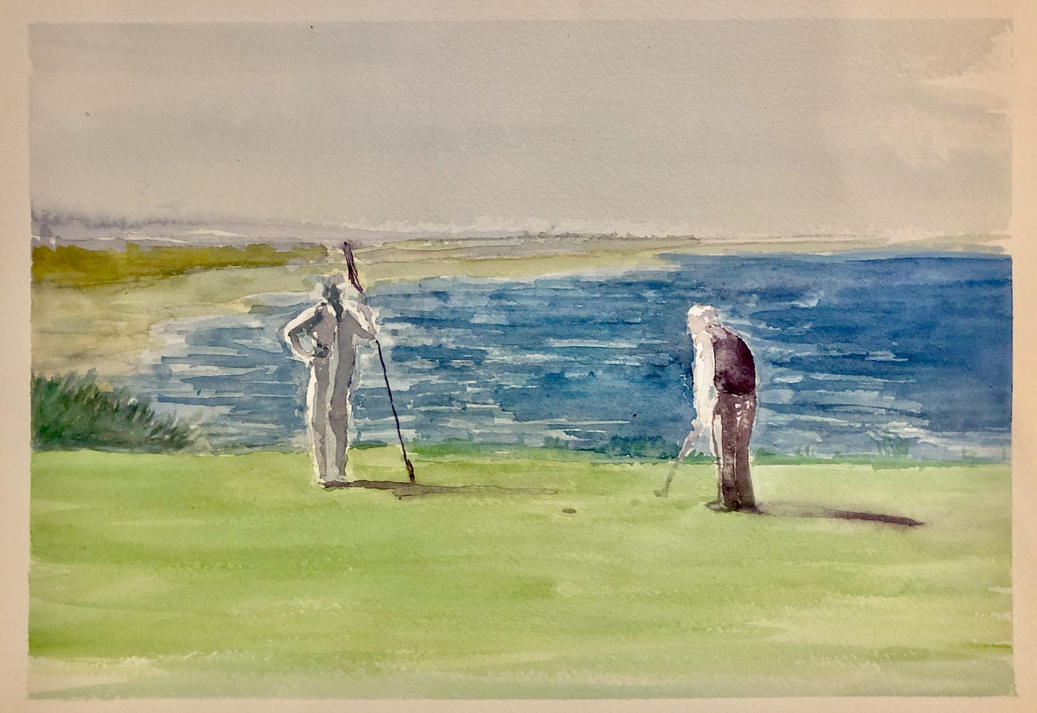 Mr. Spiller can go deep, not just on his scorecard, that comes as a corollary to another kind of depth. You can tell that he sees things that not everyone sees. Maybe he feels them the way that he does when he plays the drums with the praise band at church. He seems drawn to simplicity. When he says that he loves to watch Bryson (which he plans to do later that day) you get the feeling that it is not for the mammoth drives or the YouTube stunts but for something that presents itself to his mind’s eye in a way that relieves it from a blurry background. At one point he says to me, “I see something in your swing that I have seen somewhere before, hmmmm, it will come to me.” He did not bring it up again, although I did admit that Scottie Scheffler’s now famous footwork had rescued me from years of concerned comments like, “looked like you slipped when you hit that one.” Maybe it was my Schefflerian footwork that he noticed and filed into his memory, but it won’t surprise me if it was something much more minute and subtle that occurs to him at some later date, when he sees it in someone else.