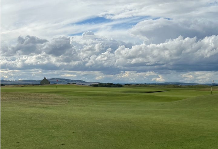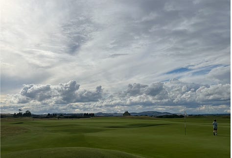 If you have heard anything about The Old Course you have probably heard that it is closed on Sundays. Closed for golf that is. It is open for anyone to simply roam. Even though I knew this, walking onto the sacred grounds felt very strange. Sometimes during a Major League Baseball game you might hear the PA announcer say something like “...attention fans, after the conclusion of the 9th inning, children under the age of 12 are invited with their parents to come onto the field to run the bases at (insert field name).” Those can be special an memorable experiences, but this does not feel the same. This feels more like if someone at Wimbledon said, “here are the keys to Centre Court, we will be back on Monday.” It was uncomfortable at first, no ropes, no marshals, no one telling you where to go and what not to touch. For the first several minutes I nervously policed my kids behavior; “Don’t run around...don’t roll down those hills...stay away from the greens.1” But, by the time that we had wandered all the way out to the farthest reaches of the course and began heading back towards the town, all of that was gone. They ran and rolled, raced and rambled, while my wife graciously asked me to remember and recount the holes as I had played them the day before. It will always be a sweet memory for me and I especially love that one of those foggy memories of my children’s childhood will be that they ran around on “The Old Course”*. Even though for my daughter (who was five at the time) it will mostly be remembered because of stories and pictures, isn’t that really how all of us remember things?